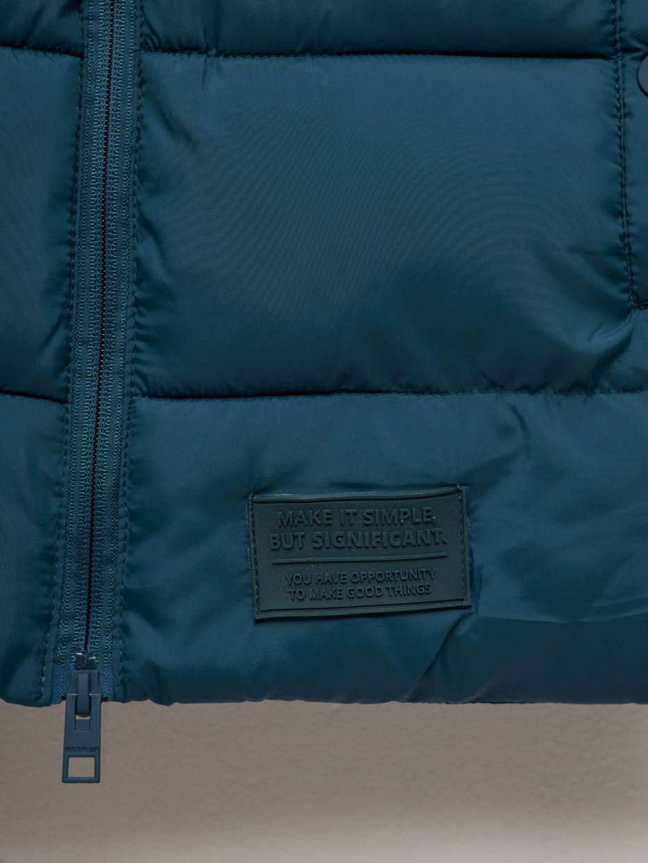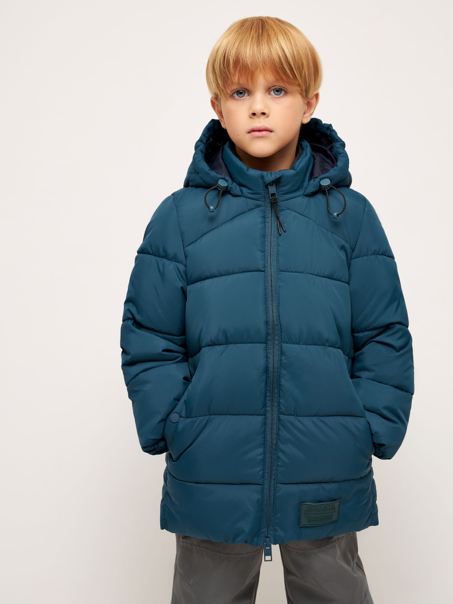 Jacheta matlasata cu hota -Croiala dreapta lejera - Hota detasabila cu strangere - Guler stand - Fermoar cu protectie barbie - Mansete lungi - Mansete elastice - Buzunare crestate pe nasturi - Eticheta cusuta pentru numele bebelusului - Plasture cauciucat decorativ - Tesatura hidrofuge - Izolatie - Synthepuh - Greutate izolatie - 230 gr. - Interval de temperatura recomandat 0/-10 Age: 2-6 years Season: GEN 2022 Compoziție: 100% poliester, Izolație: 100% poliester, Căptușeală: 100% poliester
