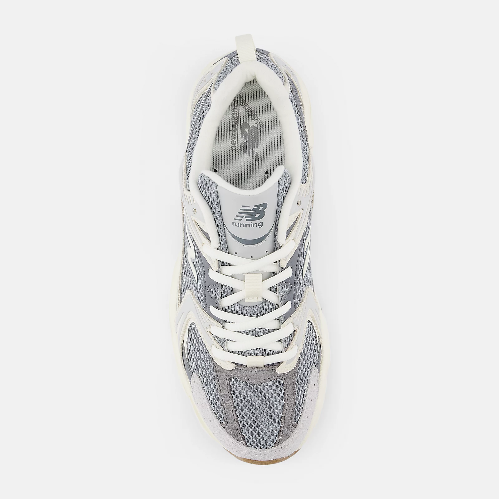| Compoziția mărfurilor | Modelul original U530SUB a combinat estetica de la începutul mileniului cu fiabilitatea unui pantof de alergare pe distanțe lungi. Modelul 530, relansat, întruchipează stilul casual modern cu un design funcțional. O talpă intermediară segmentată ABZORB este asociată cu o parte superioară clasică din plasă și material sintetic, care combină curbe și unghiuri line pentru un aspect distinctiv, high-tech. |