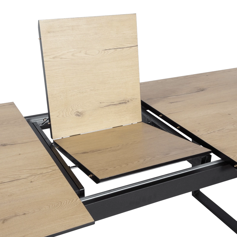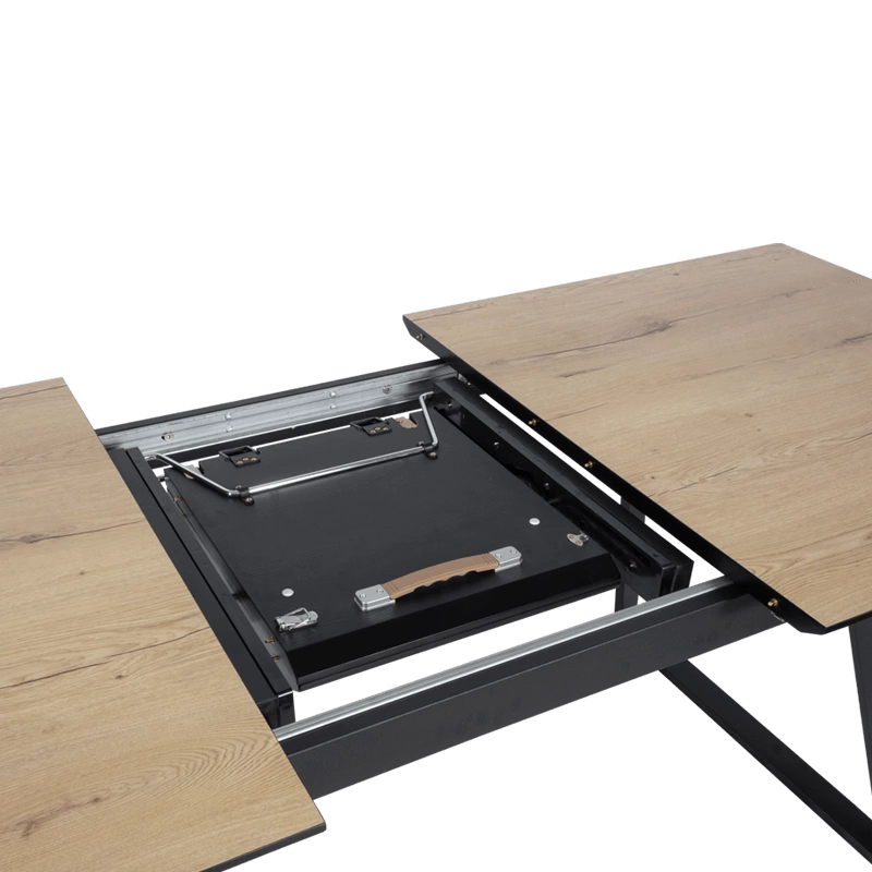 Dacă trec oaspeți neaștepți, puteți crește suprafața utilizabilă a mesei dvs. preferate în câteva secunde. Modelul este extrem de ușor de întins prin despărțirea celor două părți. Sub ele se află o placă pliată în jumătate, cu un mâner convenabil care poate fi scos dintr-o singură mișcare. Practic și rapid, nu?