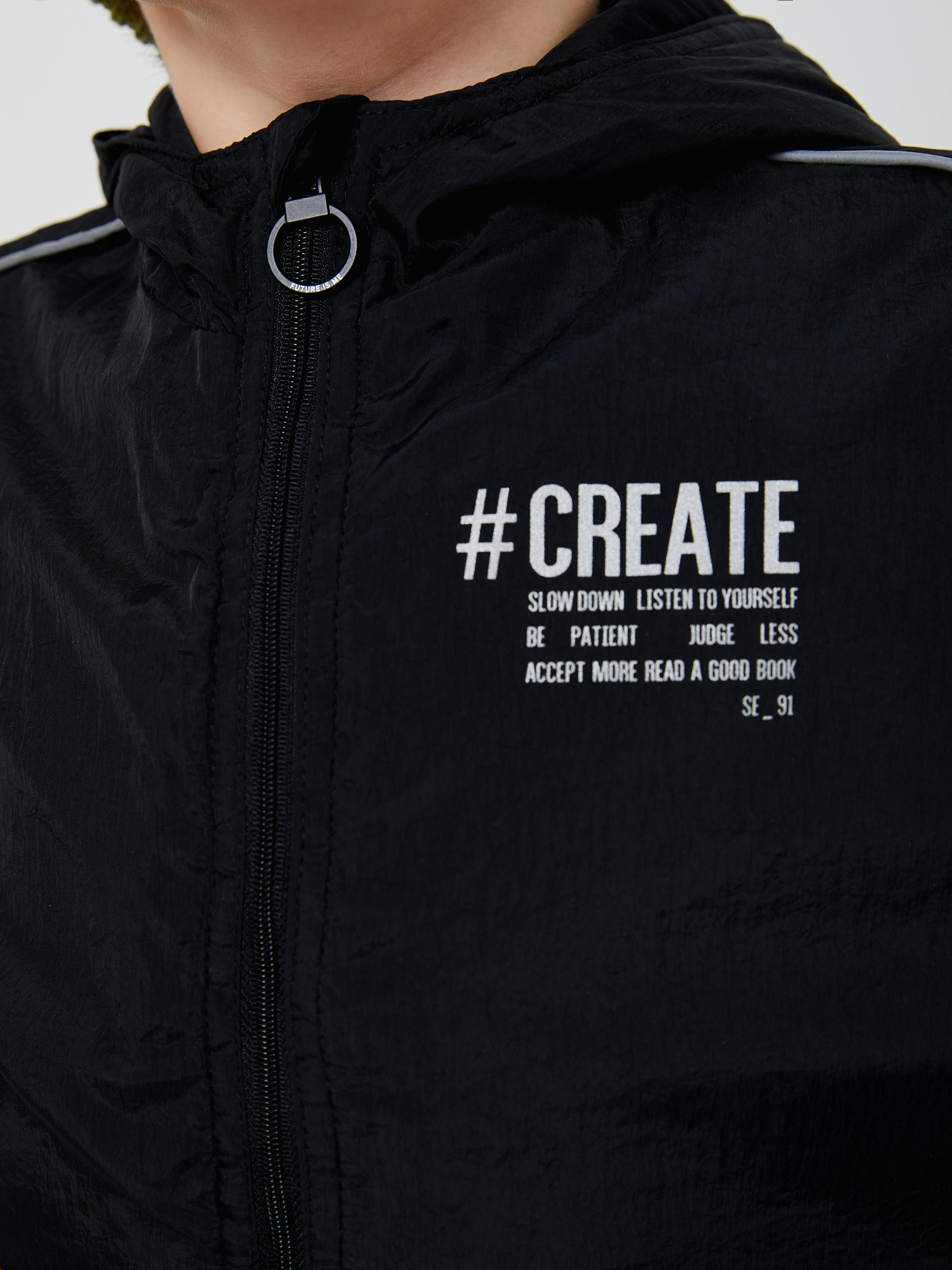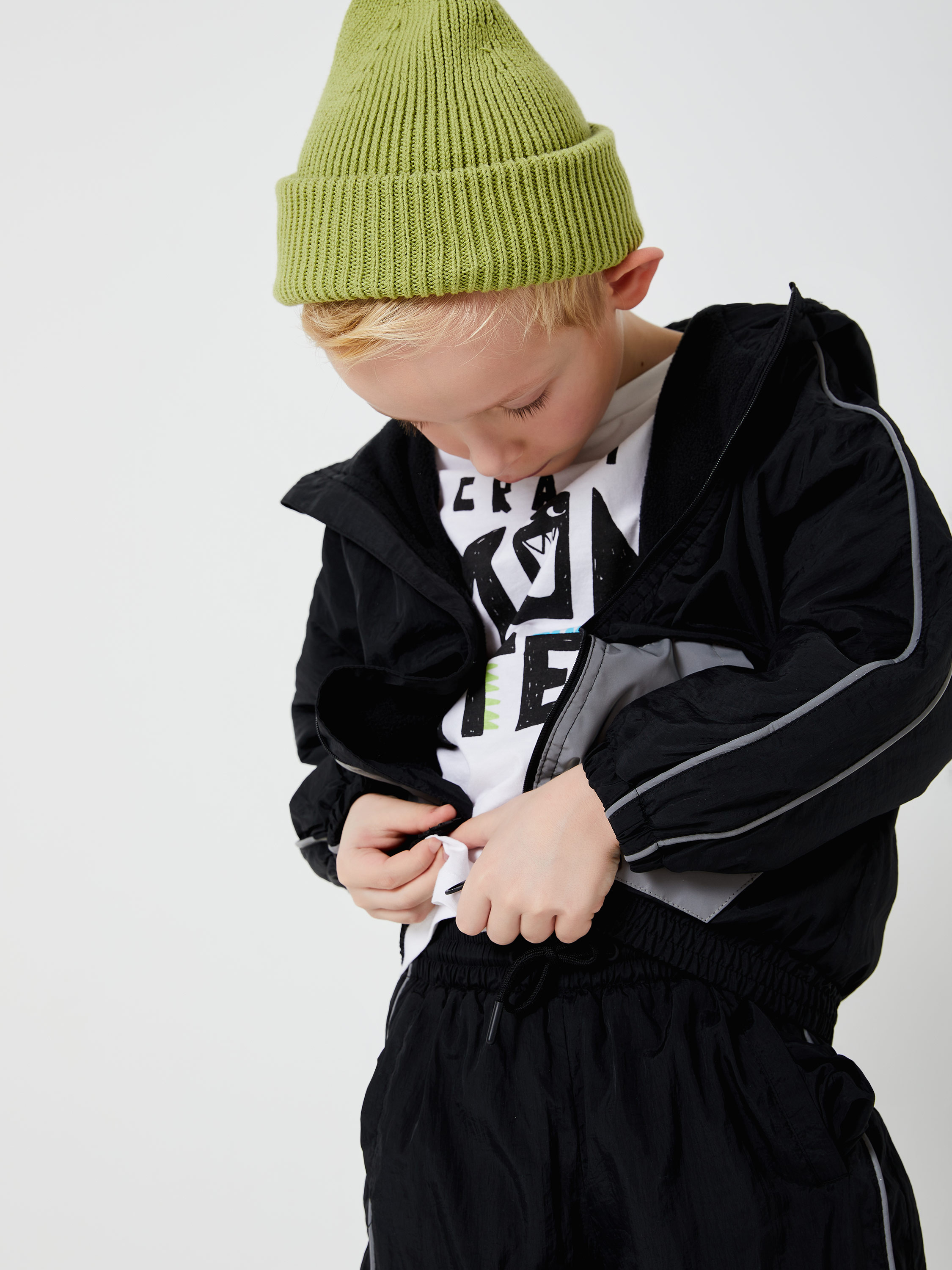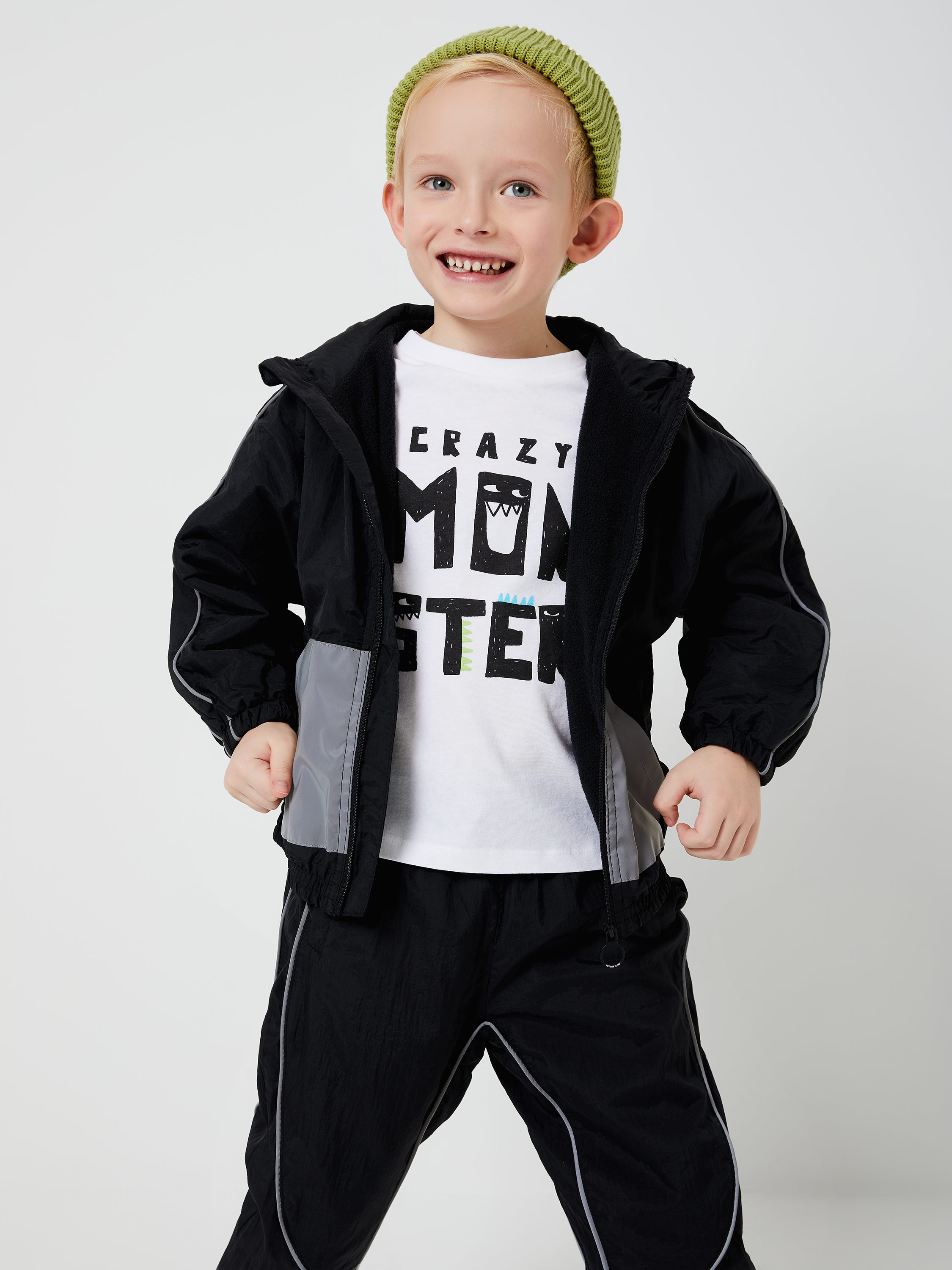 Ветровка из нейлона с принтом и светоотражающими деталями - Свободный крой - Капюшон - Высокий воротник - Длинный рукав - Застежка-молния с защитой подбородка - Накладные карманы - Резинка на манжетах и снизу - Флисовая подкладка На ребенке представлен размер 110 Возраст: 2-6 лет Сезон: ВЕСНА 2021 Состав: 100% полиамид, Подкладка: 100% полиэстер Артикул: 1803061136