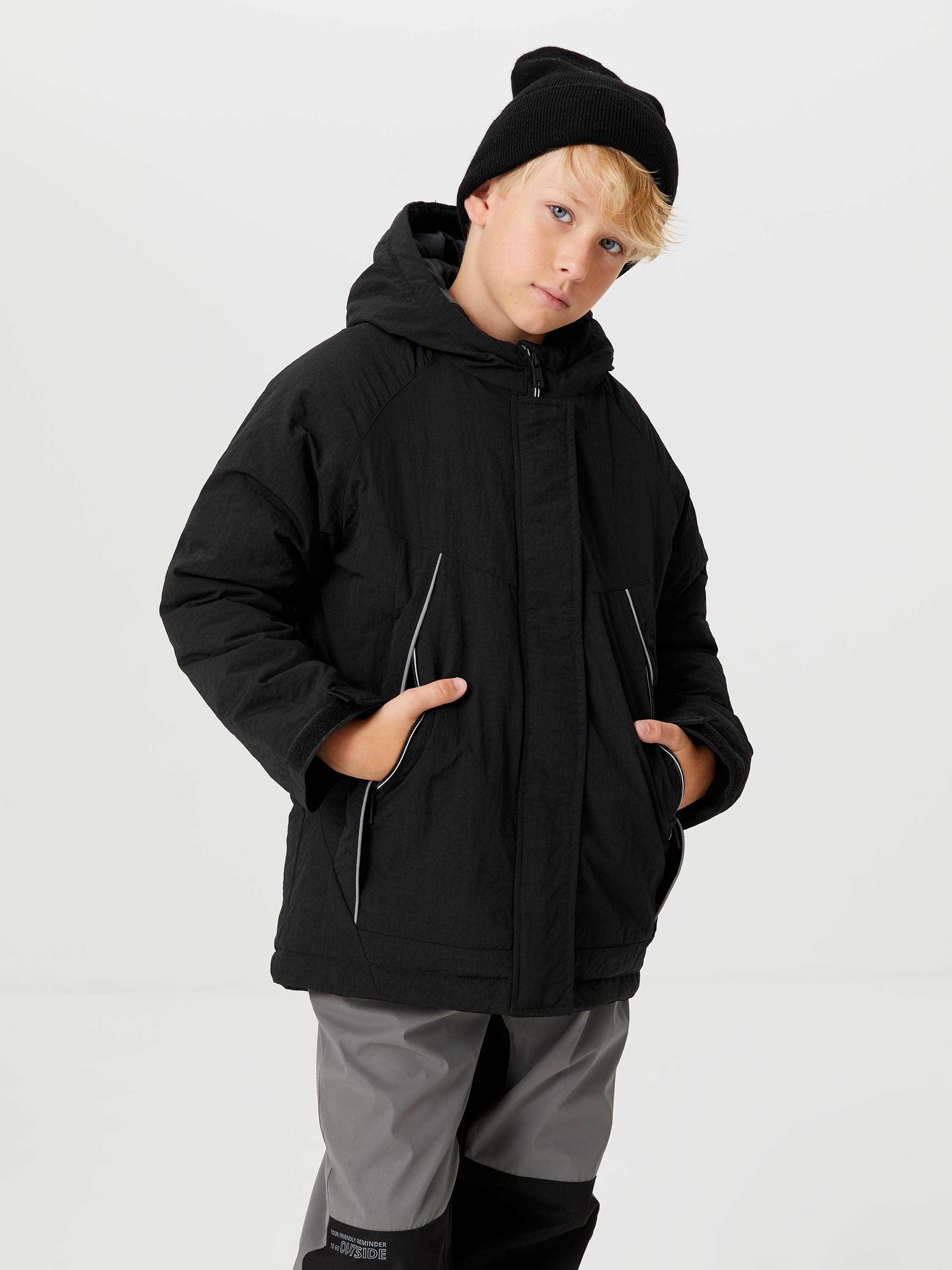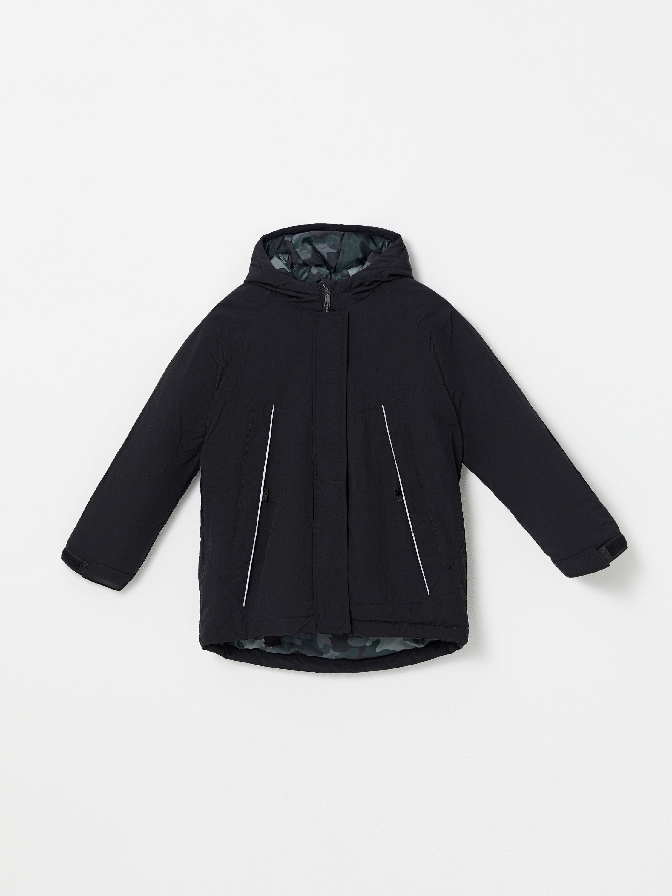Куртка со светоотражающим кантом и внутренними лямками для удобства ношения в помещении - Прямой крой - Несъемный капюшон - Воротник-стойка - Длинный рукав реглан - Манжеты с хлястиками для регулировки объема - Ветрозащитный клапан на кнопках - Застежка-молния с защитой подбородка - Карманы с клапанами по бокам - Водоотталкивающая ткань - Внутренний вшивной ярлычок для имени ребенка - Удлиненная спинка - Принтованная подкладка - Утеплитель - синтепон - Вес утеплителя - 130 гр. - Рекомендованный температурный режим: +10/+15 На ребенке представлен размер 140 Возраст: 7-12 лет Сезон: ОСЕНЬ 2021 Состав: 100% полиамид, Подкладка: 100% полиэстер, Утеплитель: 100% полиэстер Артикул: 1803071129