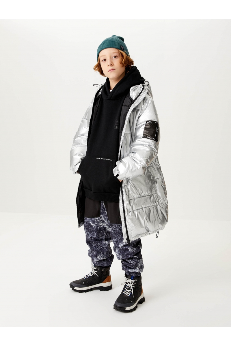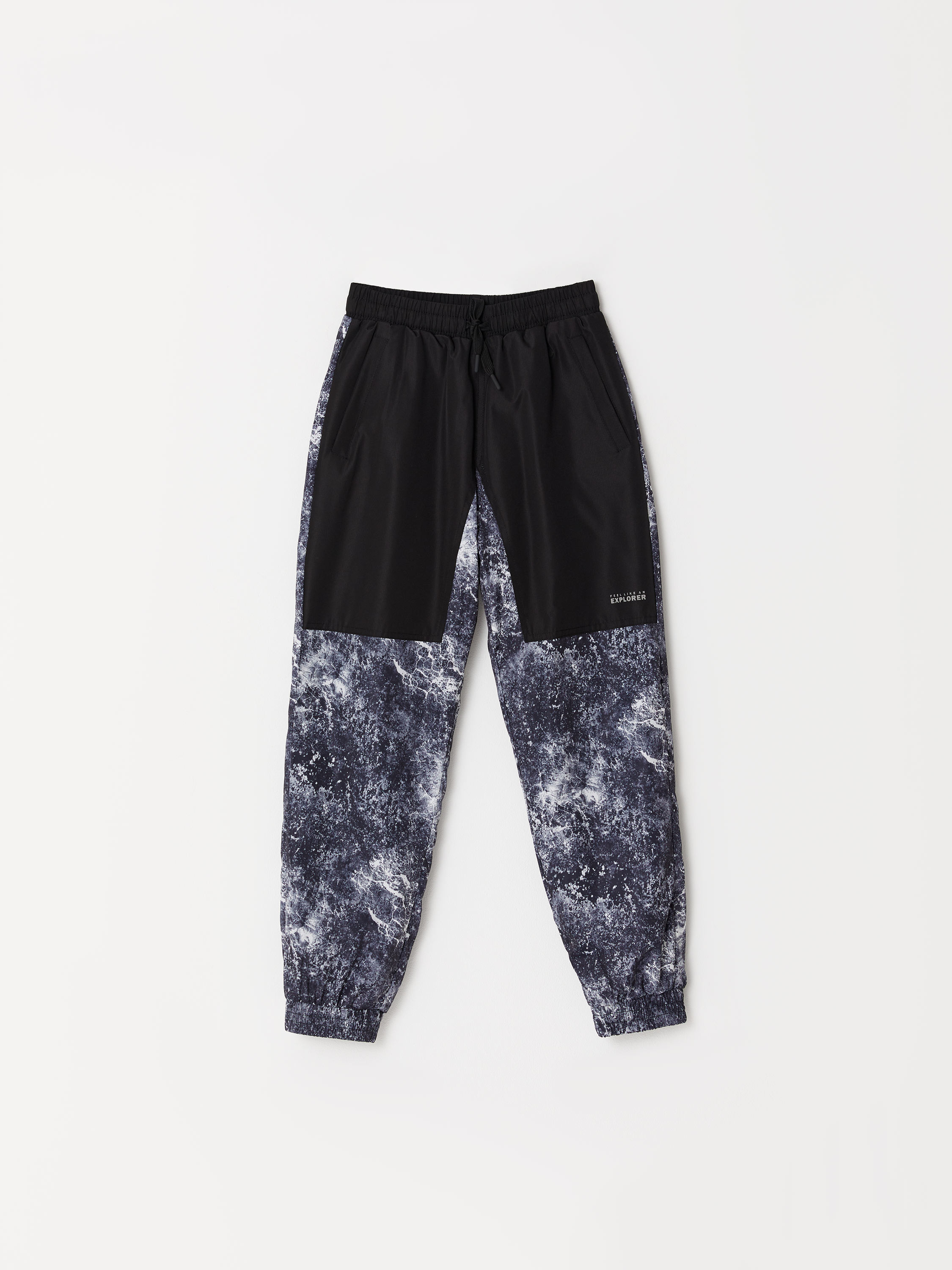 Утепленные джоггеры с эффектным принтом с разводами - Свободный крой - Средняя посадка - Эластичный пояс с кулиской - Боковые карманы - Резинка по низу брючин - Светоотражающие детали - Водоотталкивающая ткань - Флисовая подкладка - Рекомендованный температурный режим +5/+10 Возраст: 7-12 лет Сезон: ОСЕНЬ 2021 Состав: 100% полиэстер, Подкладка: 100% полиэстер Артикул: 1809071612