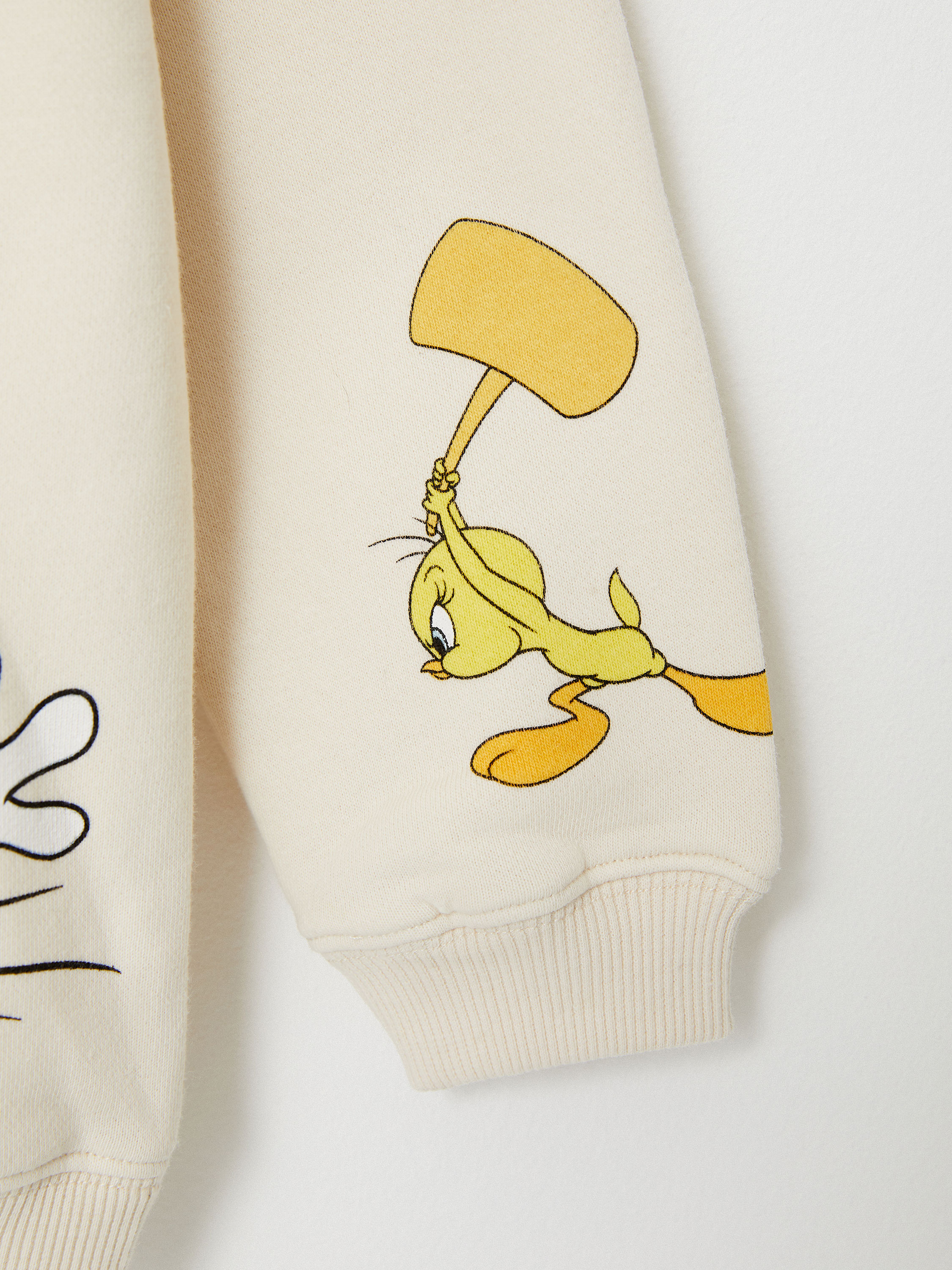 Трикотажный свитшот с ярким лицензионным принтом Looney Tunes - Свободный прямой крой - Круглый вырез - Спущенное плечо - Длинный рукав - Эластичные манжеты и пояс - Изнанка с начесом - Коллаборация с Warner Bros. Возраст: 2-6 лет Сезон: ЗИМА 2021 Состав: 80% хлопок, 20% полиэстер Артикул: 1812060403