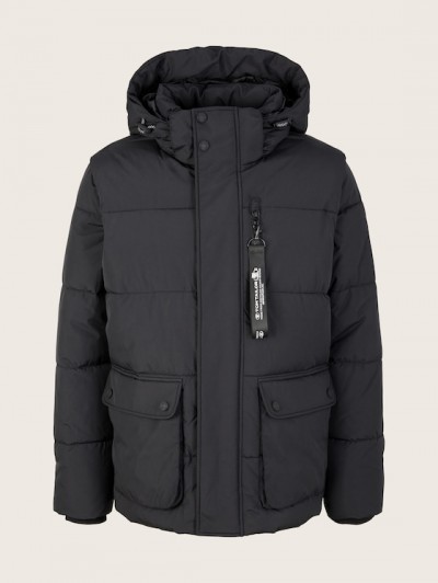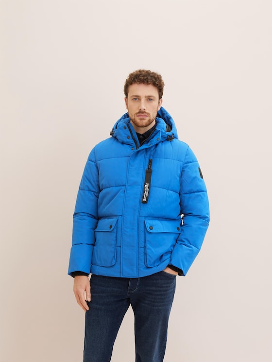 Стеганая зимняя куртка с боковыми карманами, внутренним карманом, логотипом на нагрудном кармане и капюшоне.