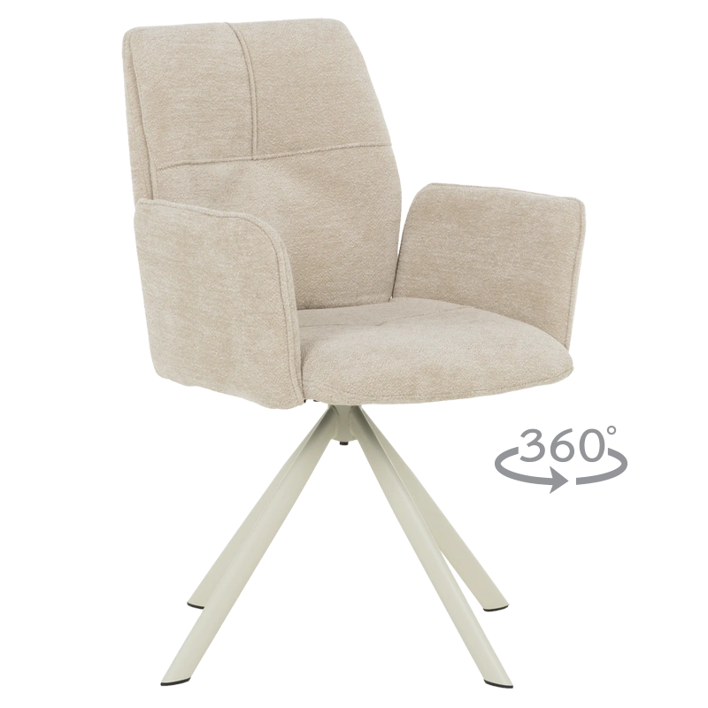BURY 1 имеет вращающееся на 360° сиденье, что дает вам свободу передвижения и лучшее общение с другими людьми за столом. Это позволяет вам свободно передвигаться, не чувствуя себя ограниченным. Эта важная деталь делает его чрезвычайно практичным и подходящим для различных интерьеров и помещений.
